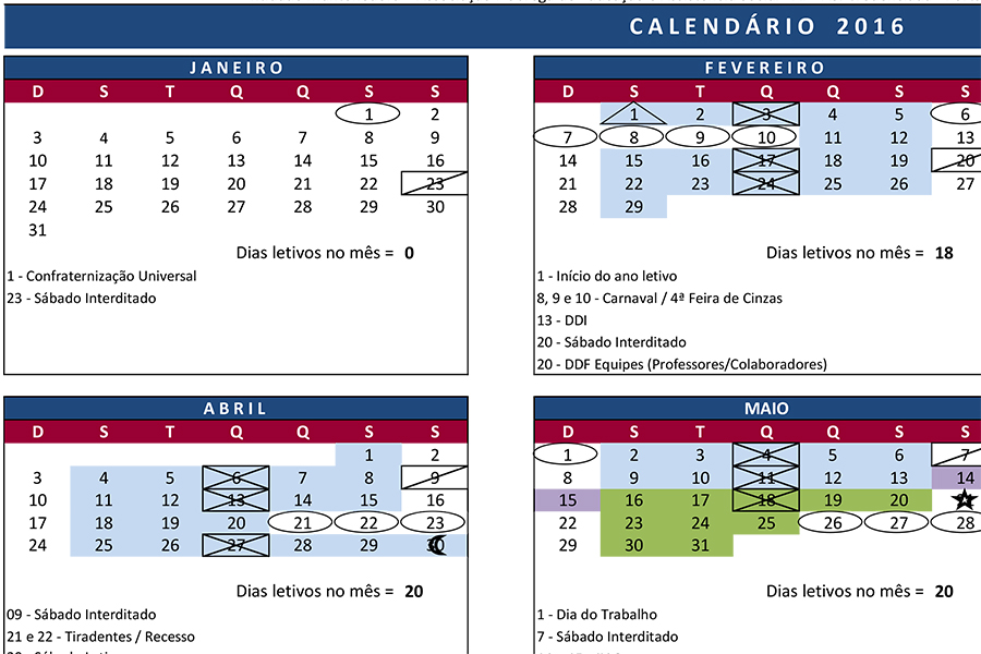 Calendário Escolar 2016