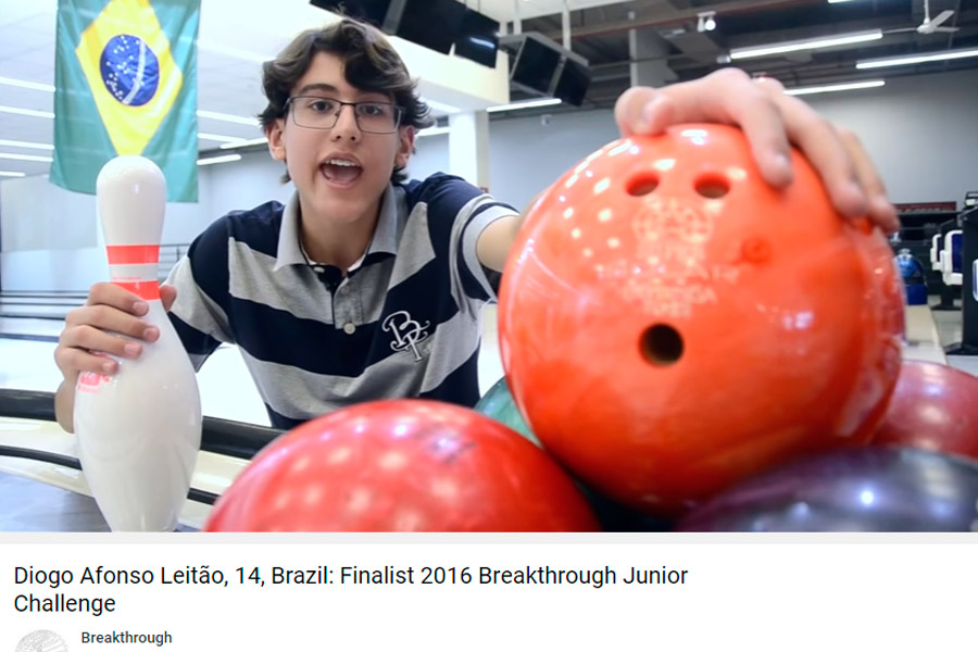 A organização do Breakthrough Junior Challenge anunciou, na noite desta quinta-feira, os vídeos dos estudantes finalistas da edição 2016 do prêmio. E nosso aluno do 9º Ano do Ensino Fundamental, Diogo Afonso Leitão, é um deles! Após ficar em segundo lugar na votação popular via redes sociais, o único representante brasileiro na competição alcançou a final inédita por meio da avaliação do comitê julgador oficial. A lista completa está disponível no site do prêmio.