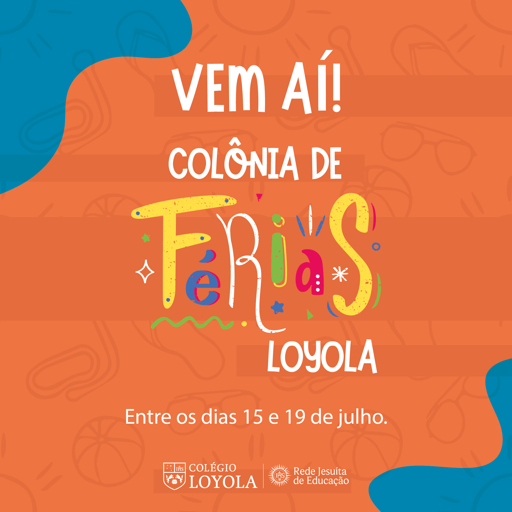 De 15 a 19 de julho, as crianças de 3 a 12 anos poderão se encontrar na Colônia de Férias do Loyola. Teremos piscinada, gincana maluca, caça ao tesouro, boliche humano, guerra das cores, festa de confraternização e muito mais, sob orientação de educadores do Loyola e da ZUM, especializada em atividades lúdicas e pedagógicas.