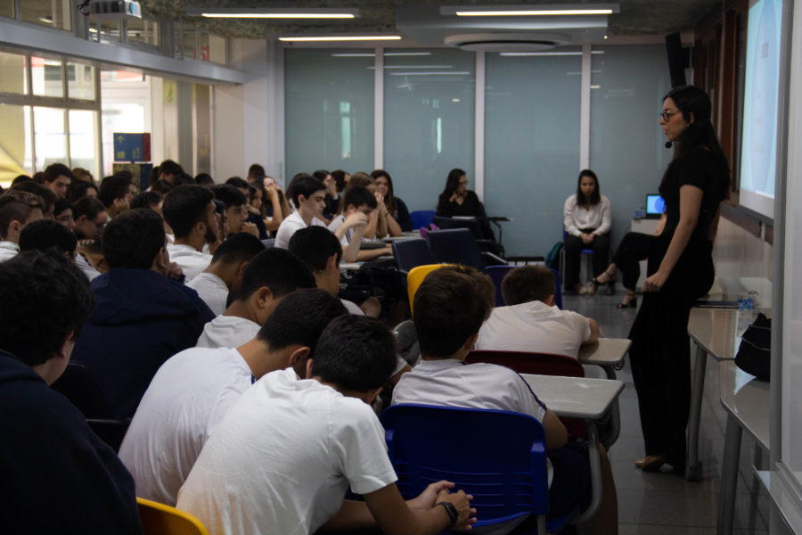 Estudantes da 1ª Série EM tiveram um dia de dinâmicas sobre matemática financeira. A atividade contou com a participação da professora Ana Cristina, de estudantes da 2ª Série EM e membros do Valor de Geração (VG), advogadas e membros do Banco Central.