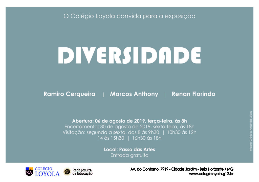 A proposta Diversidade, de Marcos Anthony, Ramiro Cerqueira e Renan Florindo, está em cartaz no Passo das Artes desde 6 de agosto e se encerra em 30 de agosto. Nessa exposição, os artistas brasileiros compartilham ideias e sentimentos acerca das reações humanas na contemporaneidade.