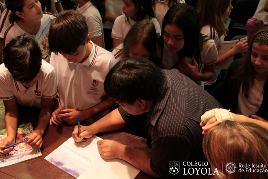 Daniel já escreveu 47 livros e muitos falam da cultura indígena, da qual ele faz parte. Nesse encontro no Loyola, o 5º Ano também pôde conhecer um pouco da história do autor e da riqueza de seu povo.
