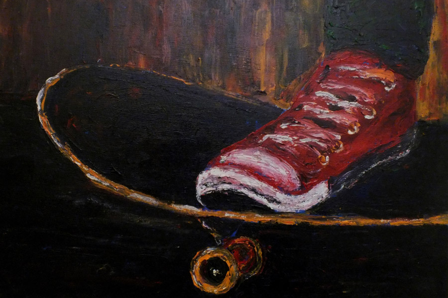 Galerias do Colégio Loyola recebem trabalhos de Andréa Goulart sobre o universo do skate.