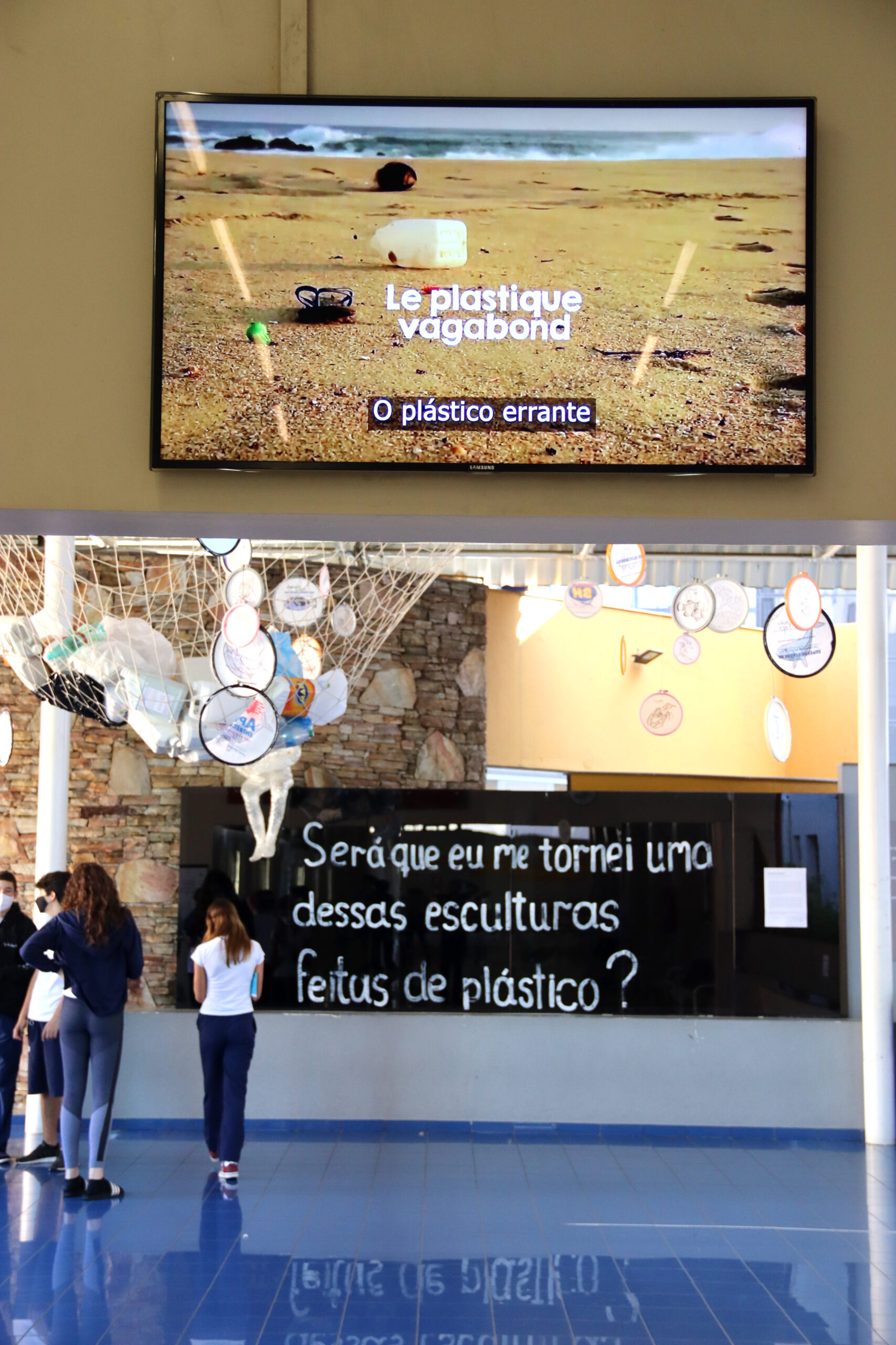 Engajada no projeto desde o início, a estudante Laura Martins ficou responsável por administrar a página no Instagram e pensar junto as demais ações para conscientização. “Promovemos uma gincana entre o 9º EF e a 1ª Série EM a turma que juntou mais plástico produzido em sala ganhou um kit sustentável. Pintamos painéis com duas baleias, fizemos duas estatuas de plástico e desenhos em discos com sacolas plásticas,” conta Laura.