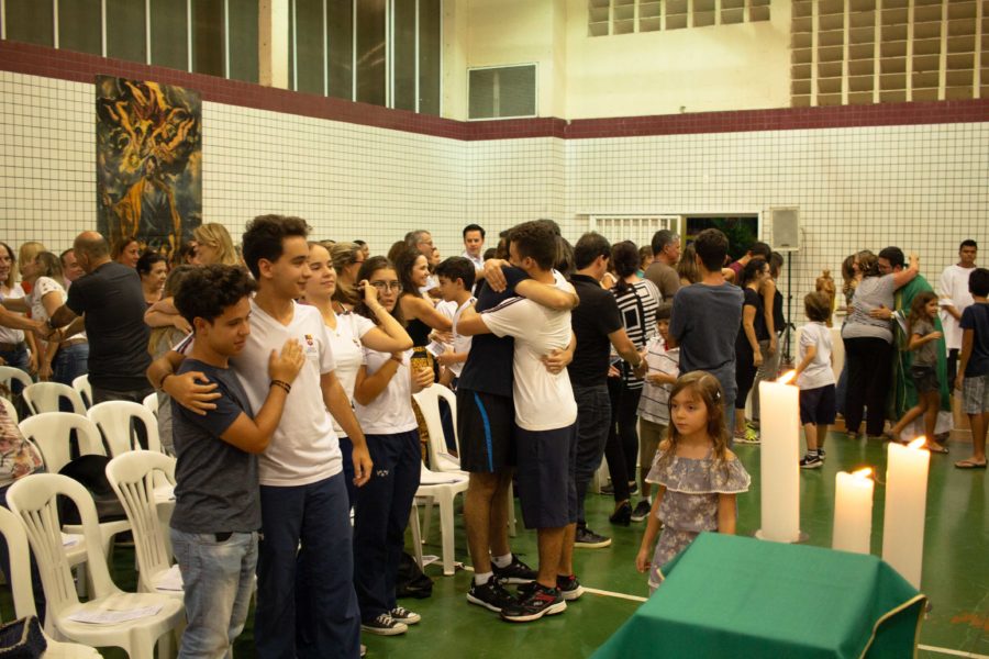 Juntos como irmãos, com o espírito fraterno que motivará o caminhar da comunidade educativa durante 2019, estudantes, famílias e colaboradores compartilharam a vida, a missão e a amizade com um lanche comum ao fim da celebração.