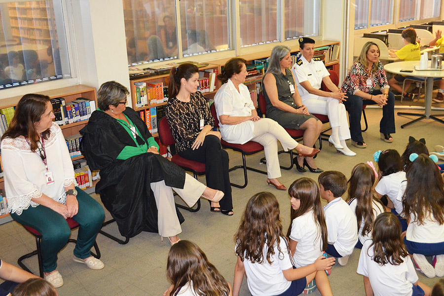 A turma D do 2º Ano EF recebeu, na tarde dessa quinta-feira (31/08), visitas muito ilustres. O convite surgiu depois de um questionamento dos próprios alunos: ao ler uma história em quadrinhos sobre cientistas brasileiros, eles estranharam a presença de poucas mulheres. Depois de conhecerem, junto com a professora Zélia Guimarães, um pouco sobre a desigualdade que ainda existe na nossa sociedade, os pequenos tiveram contato com sete mulheres que alcançaram funções de destaque em suas áreas de atuação.