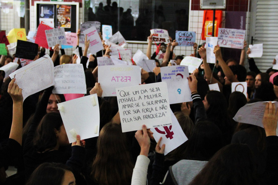 Motivados pelas notícias recentes sobre a ocorrência de um estupro coletivo de uma jovem de 16 anos no Rio de Janeiro, um grupo de alunos propôs um minuto de silêncio. Em seguida, o microfone foi aberto a falas sobre o respeito aos direitos humanos e à reflexão sobre a cultura do estupro na sociedade.