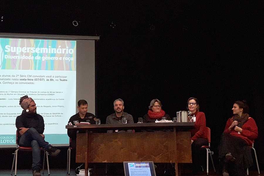 O que justiça, legislação, medicina, saúde pública, estatística, atuação policial, negociação de crises, sociologia, cultura e arte têm a ver com a discussão sobre a diversidade de gênero e raça no Brasil e no mundo? Para discutir um assunto tão multifacetado com os alunos da 2ª Série do Ensino Médio, a equipe do Colégio Loyola trouxe, também, nessa sexta-feira (7), convidados que falam a partir de experiências distintas ao lidar com o tema. Com mediação do coordenador Carlos Freitas, do professor Leonardo Caldeira e da assessora referência de Sociologia Nina de Abreu, o debate aconteceu com os seguintes convidados: